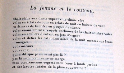 (extrait du poème « La femme et le couteau » d’Aimé Césaire, extrait de Anthologie de la poésie nègre et malgache de Léopold Sédar-Senghor – PUF 1948)